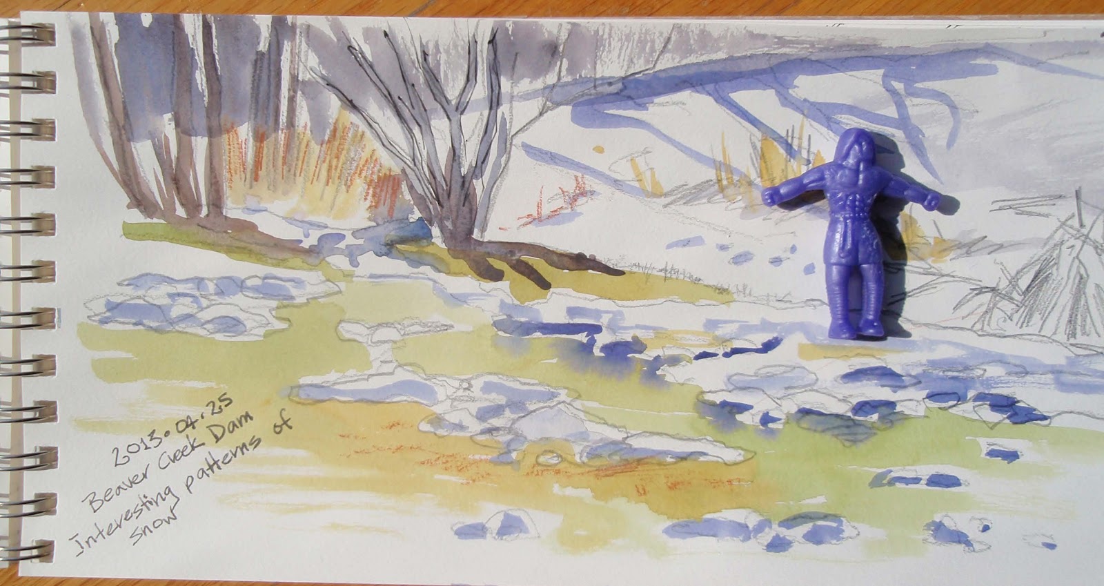 Below are a few photographs of our subject matter and some of our sketches. It was a very productive morning. Our next outing will be LaBarriere Park Thursday morning.
